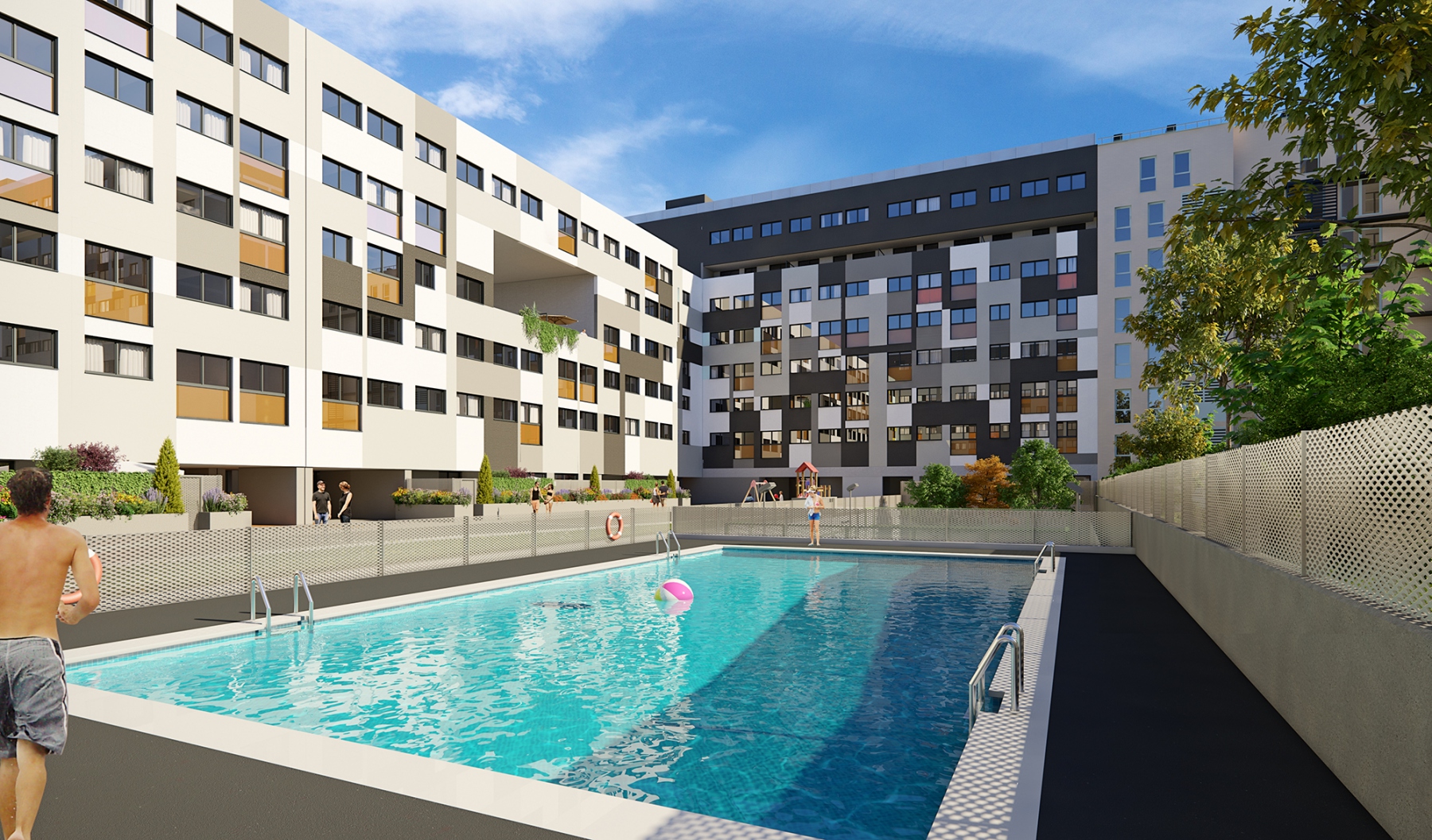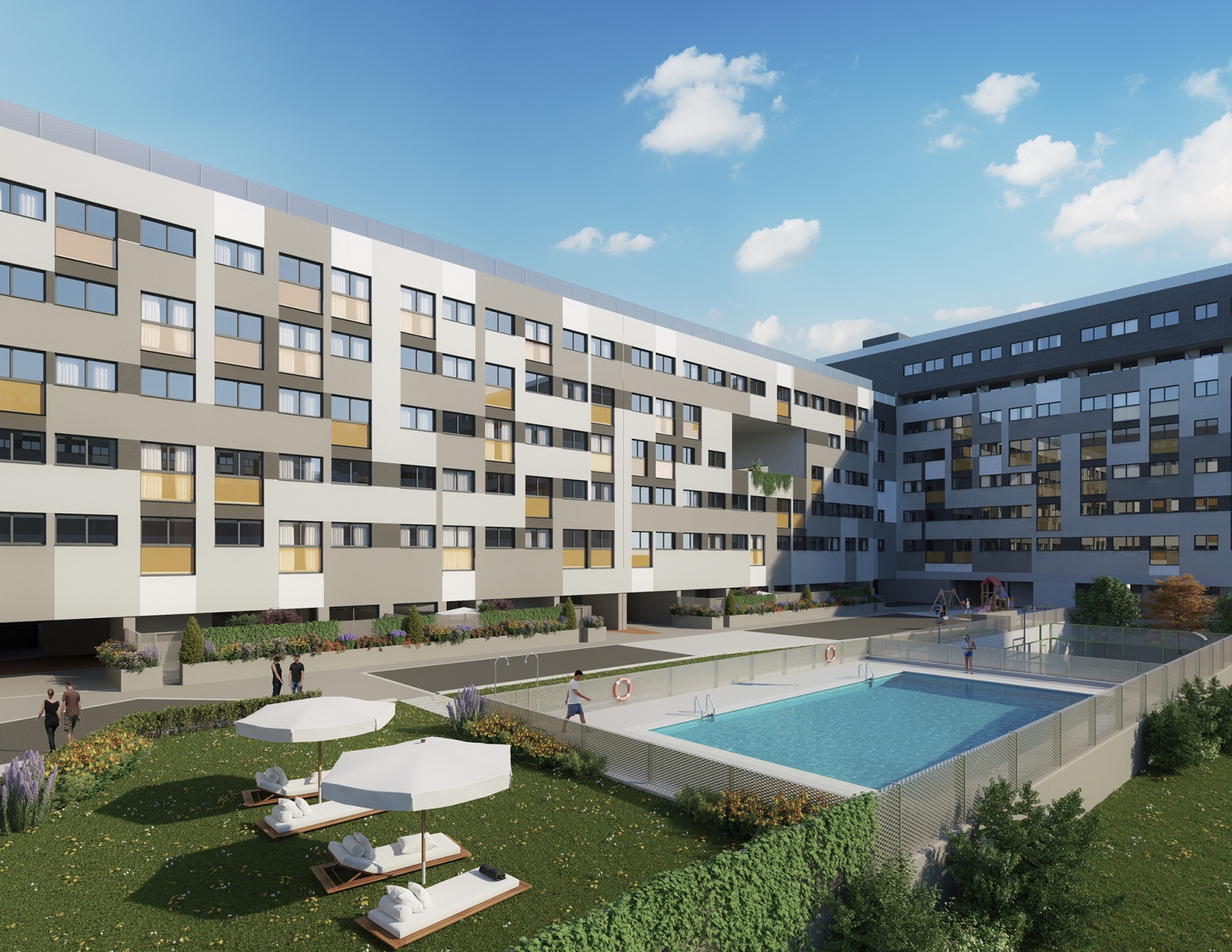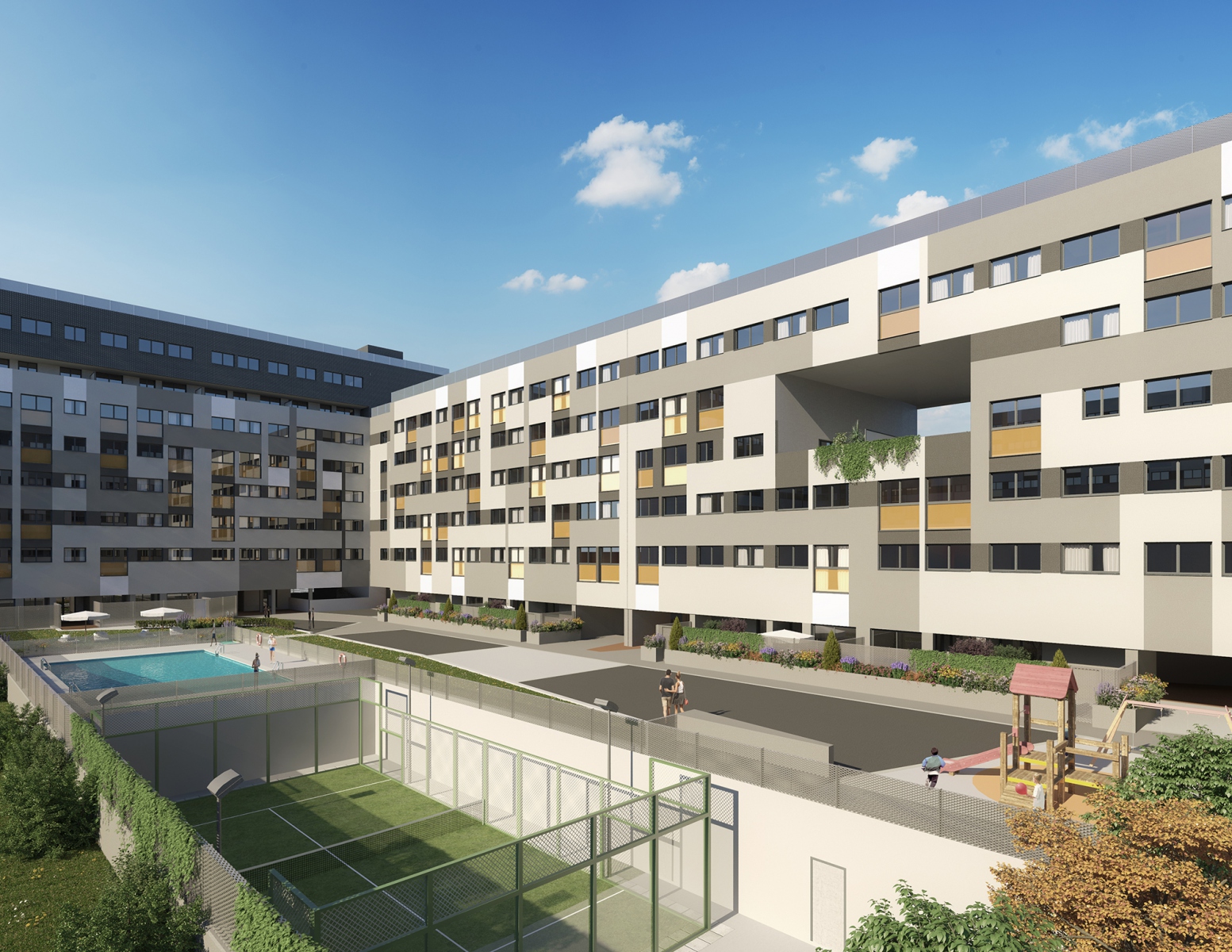 Excelente urbanización privada de 123 viviendas de VPPL de 2 a 4 dormitorios, con 2 plazas de garaje y trastero. Las zonas comunes cuentan con piscina, pádel, área de juegos infantiles y zonas ajardinadas.